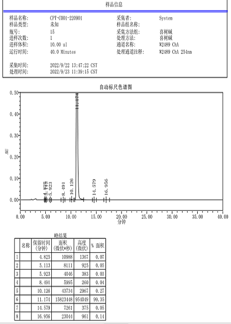 產品名稱:喜樹堿CAS 號:7689-03-4